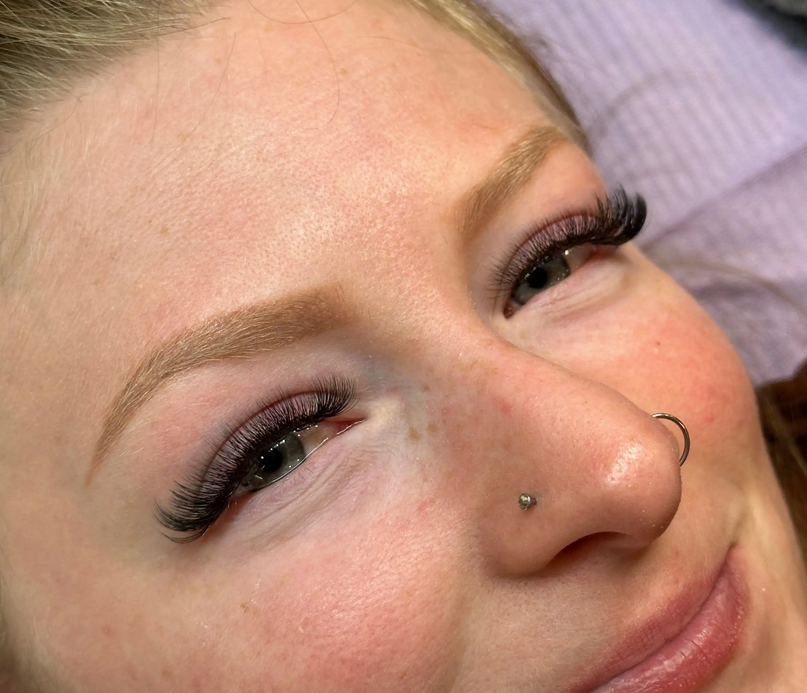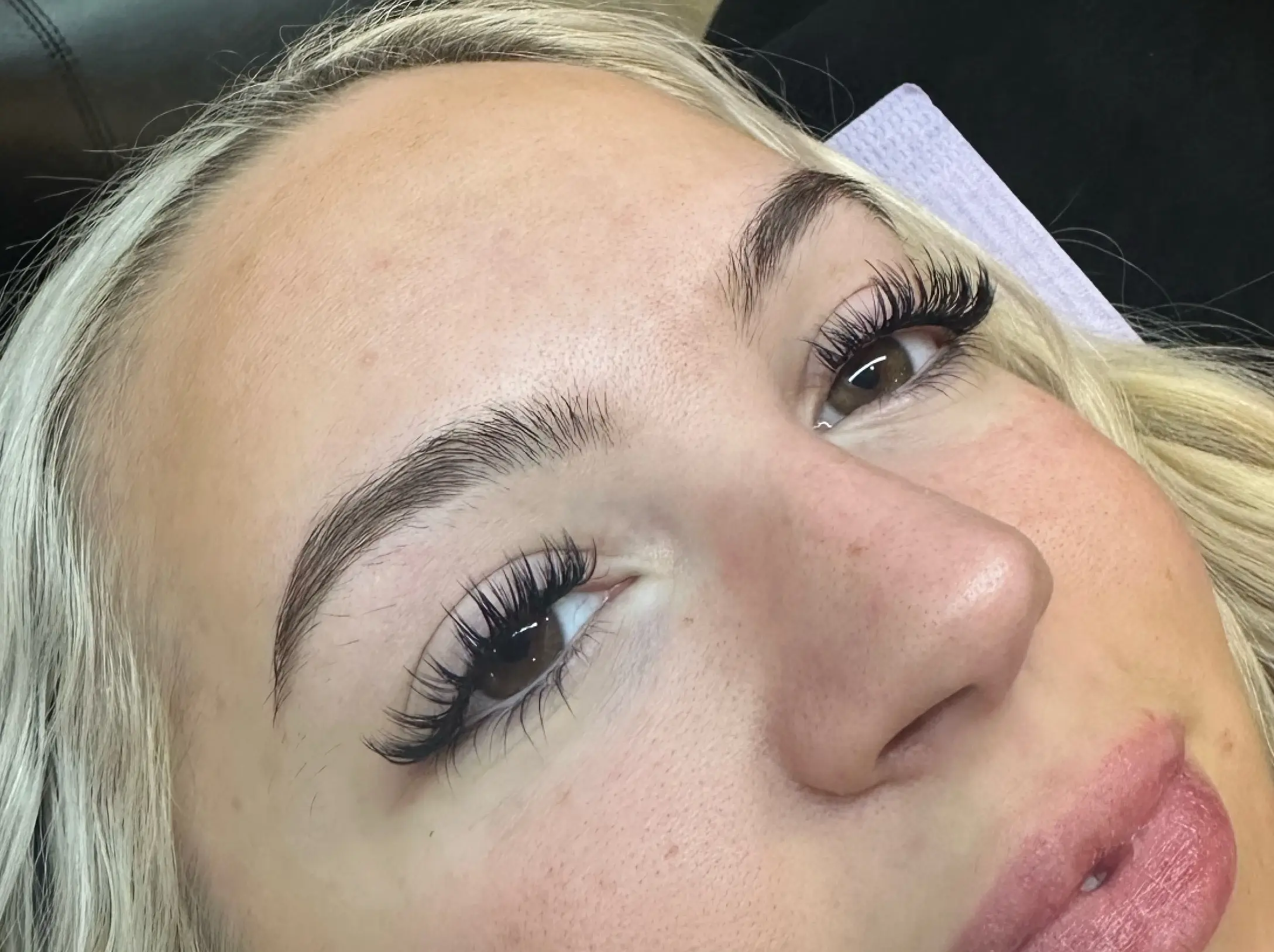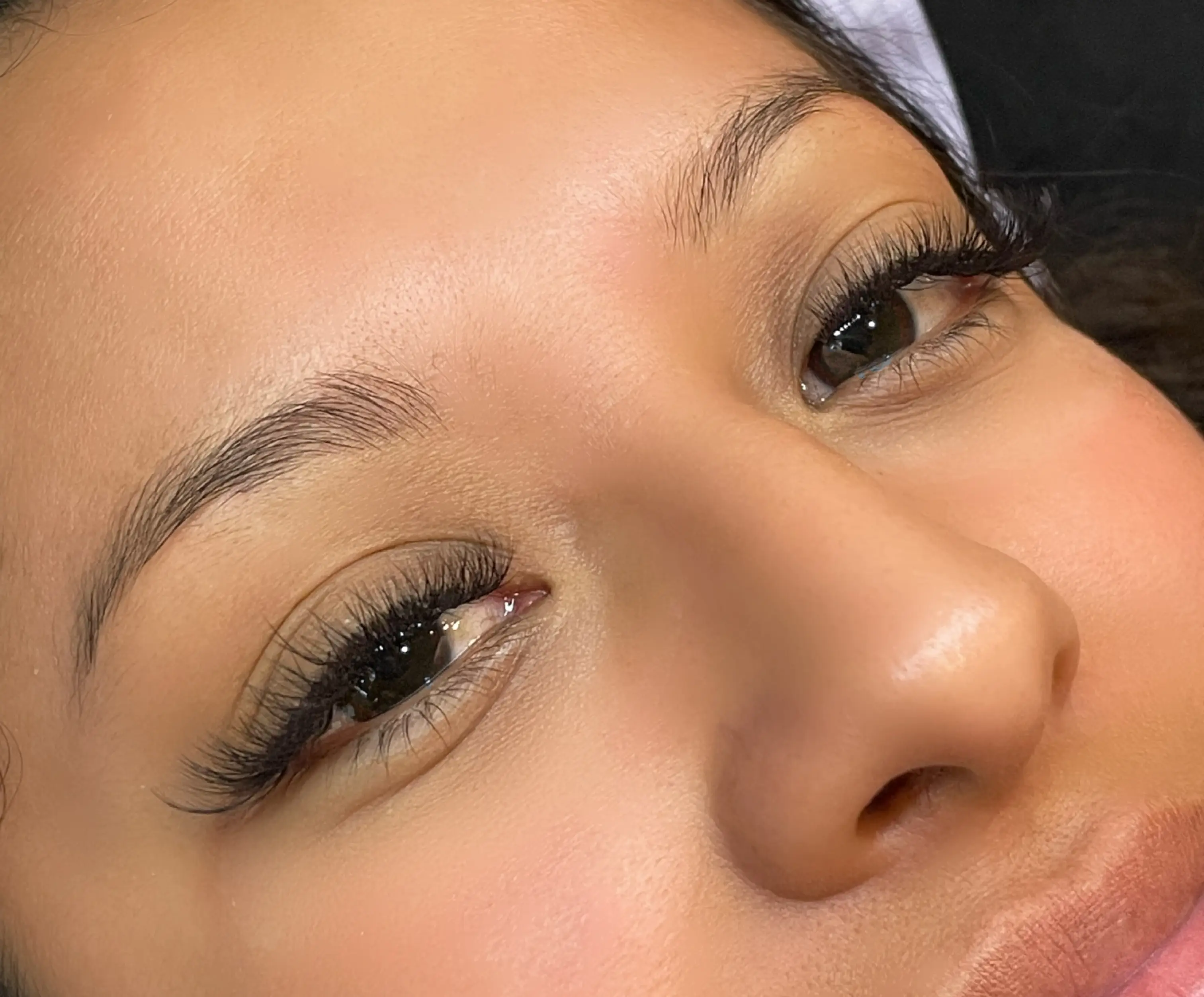 A mixtures of classic and volume lashes, giving you a fuller/fluffier more look. Please come with NO MAKEUP.